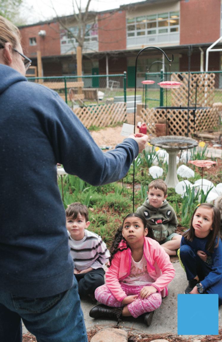 The Estes Hills Elementary School has three separate gardens. At the front of the school you are greeted by the Maag Garden, where the Pre-K and K classes come to learn about plants and insects. They learn to plant seeds and harvest them later. Especially popular are radishes, parsley (for the black swallowtail butterfly caterpillars) and cabbages.